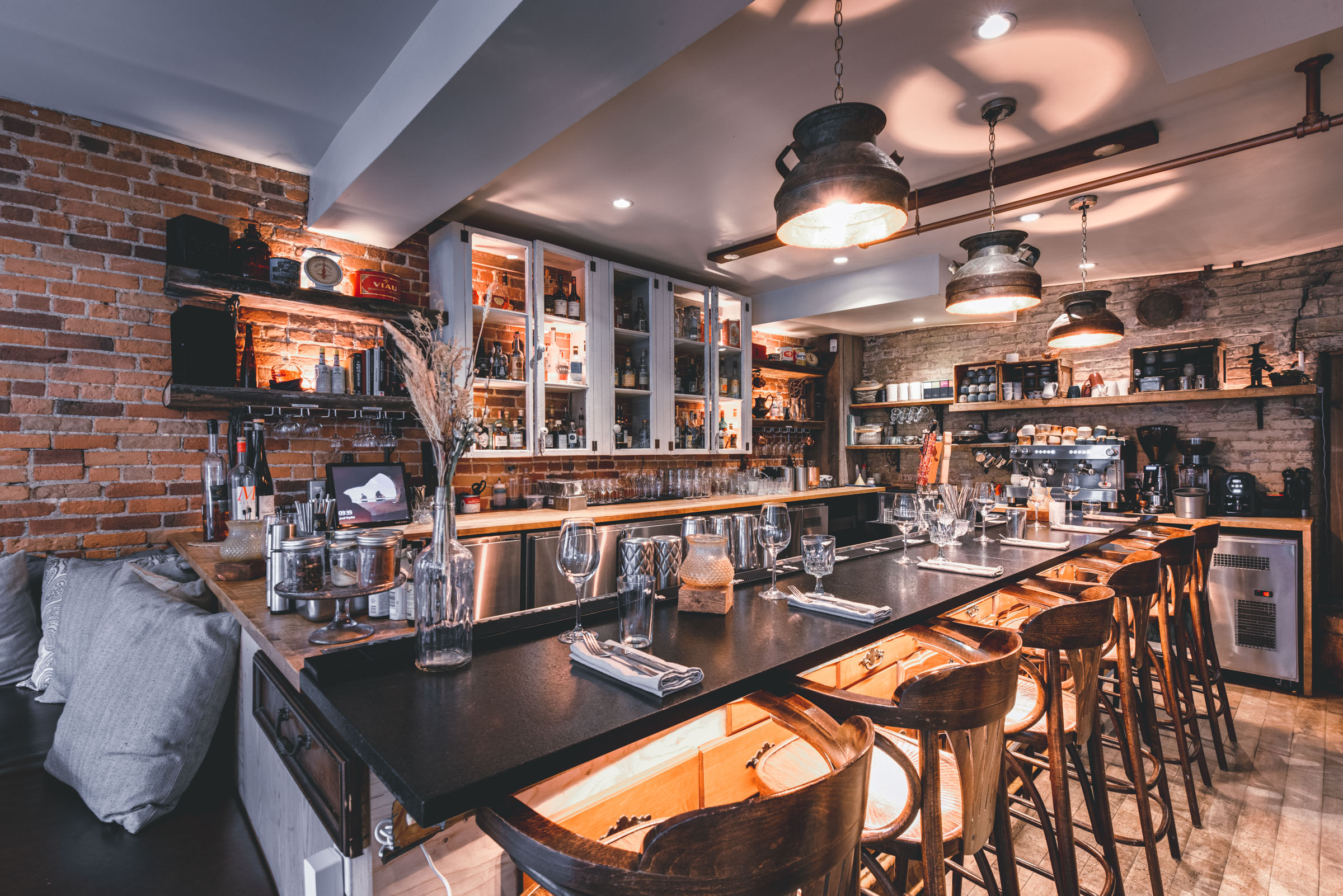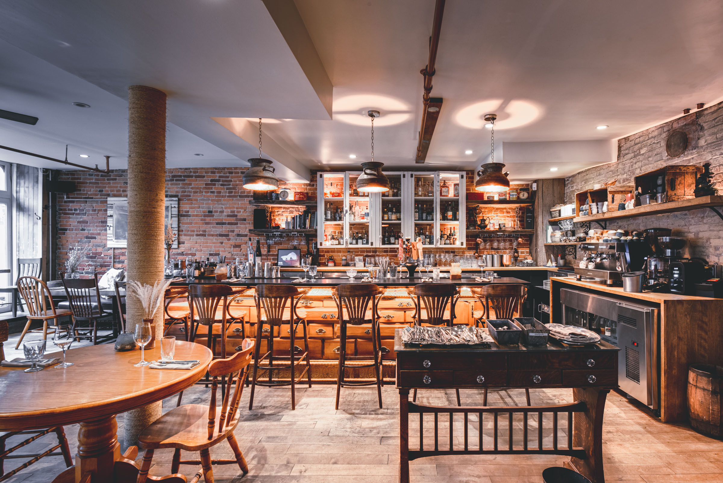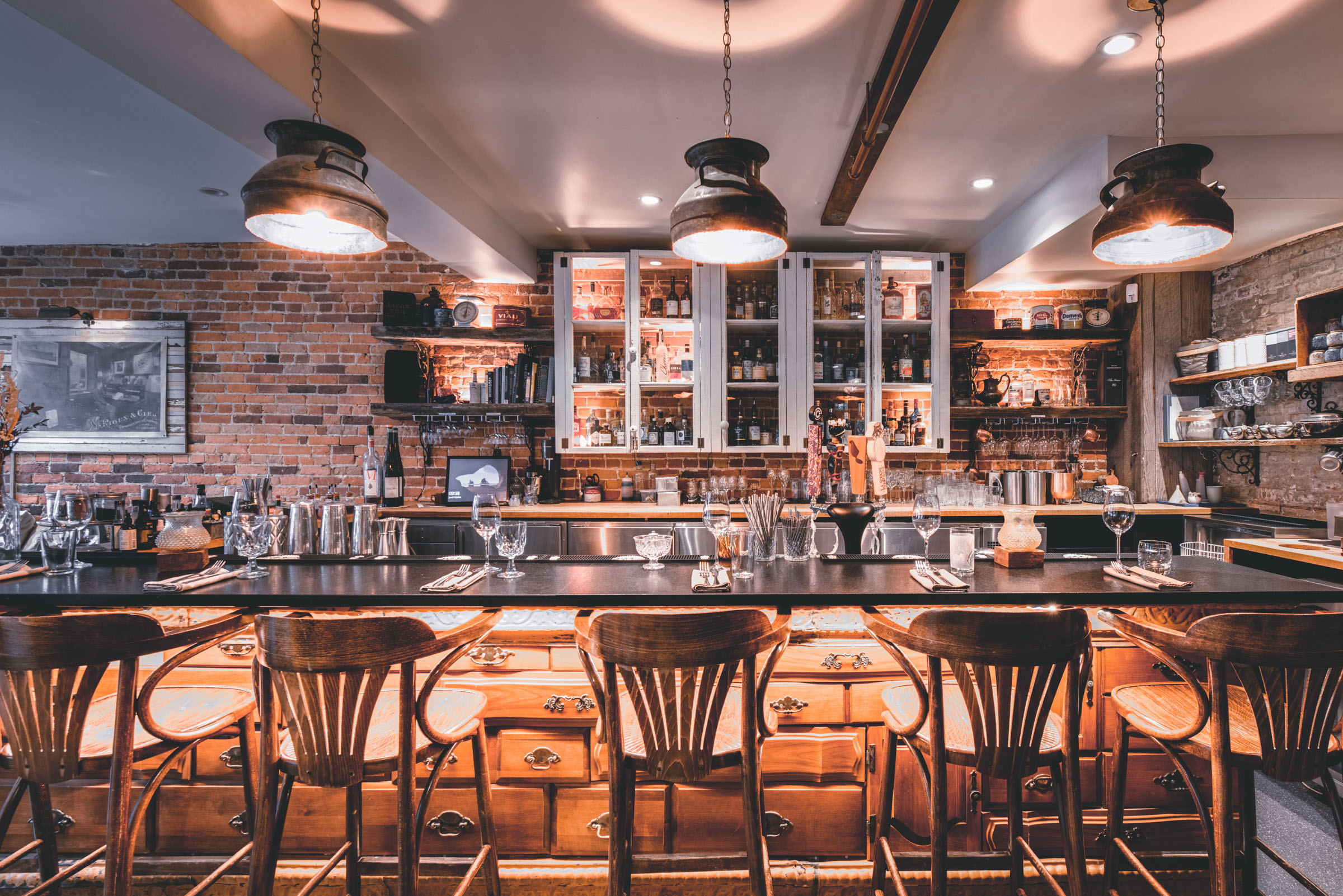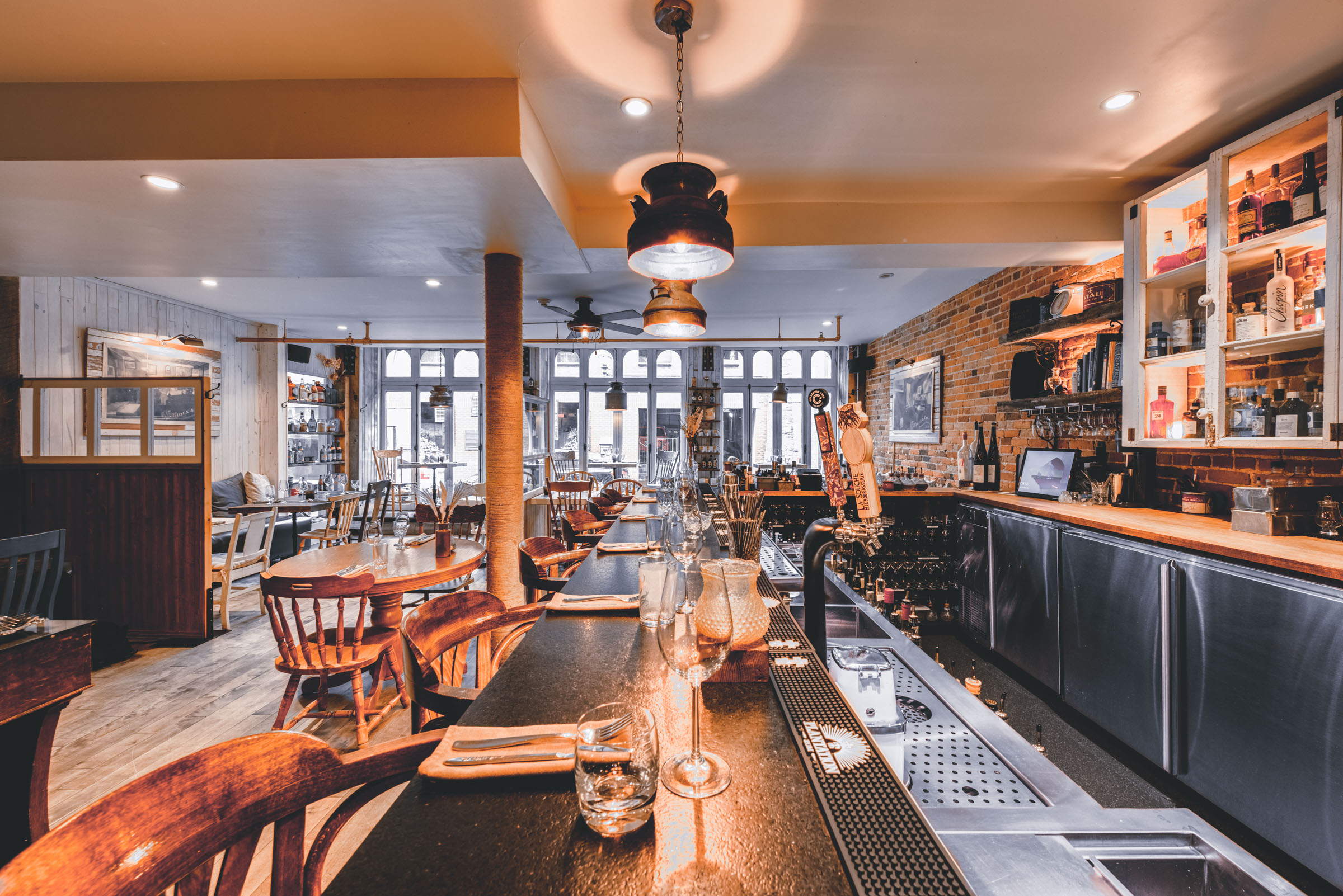 Chez Rioux & Pettigrew, l’ambiance fait partie du menu. Mandaté par Atelier du Chef, j’ai photographié cet emblématique bar-restaurant de Québec en cherchant à capturer ce qui le rend si particulier : une lumière tamisée qui réchauffe les matériaux bruts, une atmosphère intime où le bruit des verres se mêle aux conversations. Des images pensées pour transmettre autant que possible ce que l’on ressent en poussant la porte.