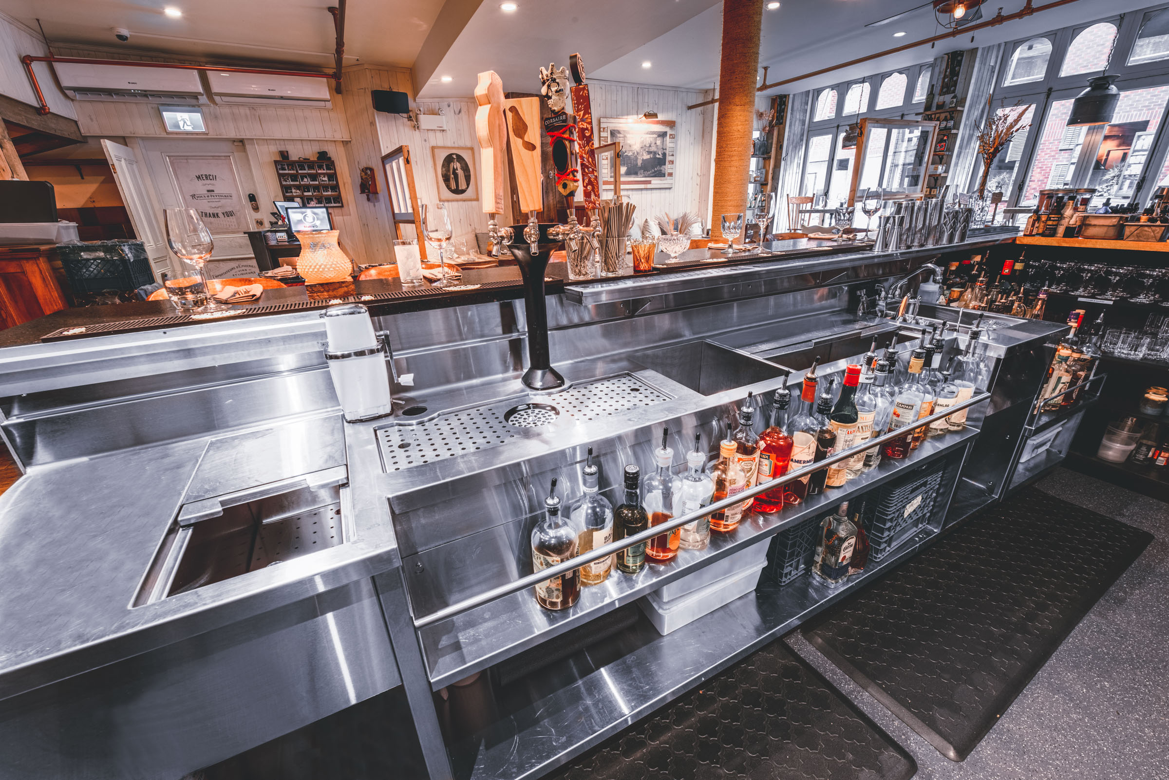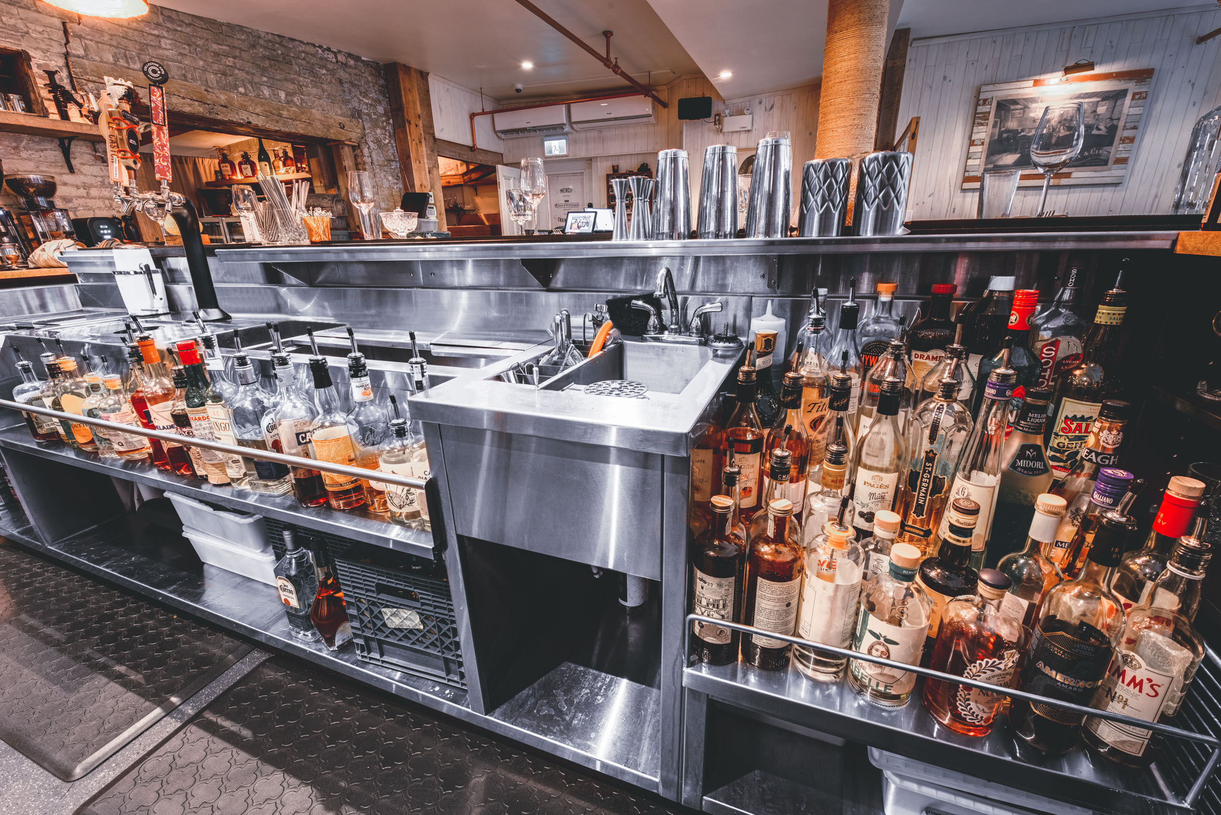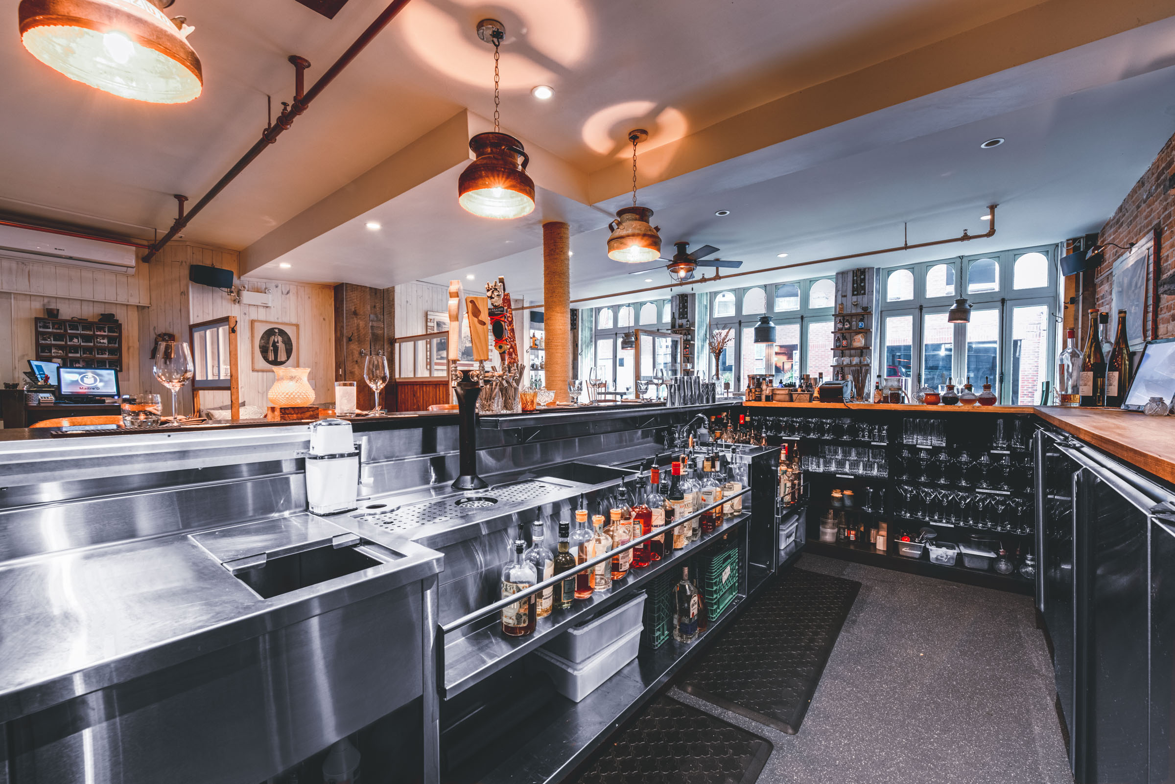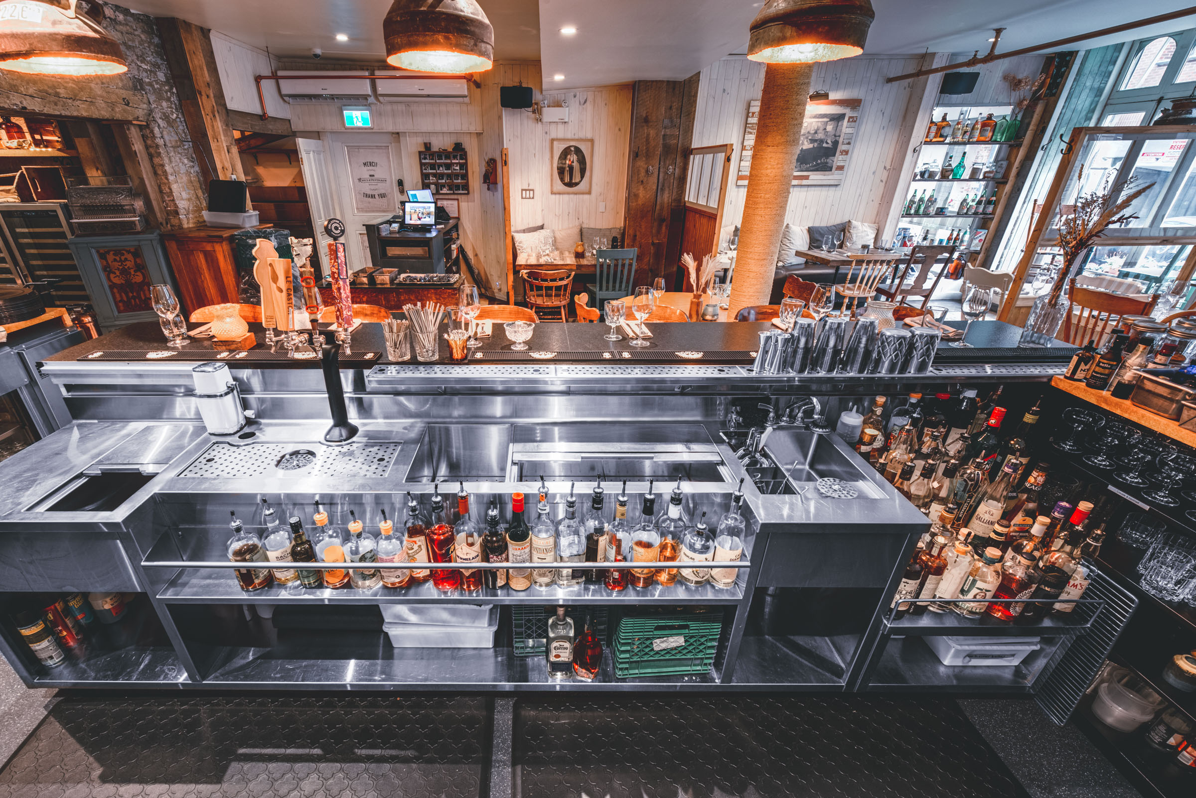 Chez Rioux & Pettigrew, l’ambiance fait partie du menu. Mandaté par Atelier du Chef, j’ai photographié cet emblématique bar-restaurant de Québec en cherchant à capturer ce qui le rend si particulier : une lumière tamisée qui réchauffe les matériaux bruts, une atmosphère intime où le bruit des verres se mêle aux conversations. Des images pensées pour transmettre autant que possible ce que l’on ressent en poussant la porte.