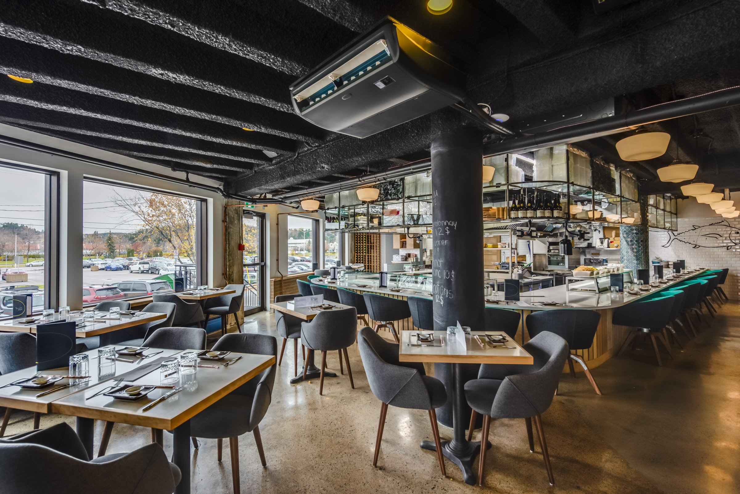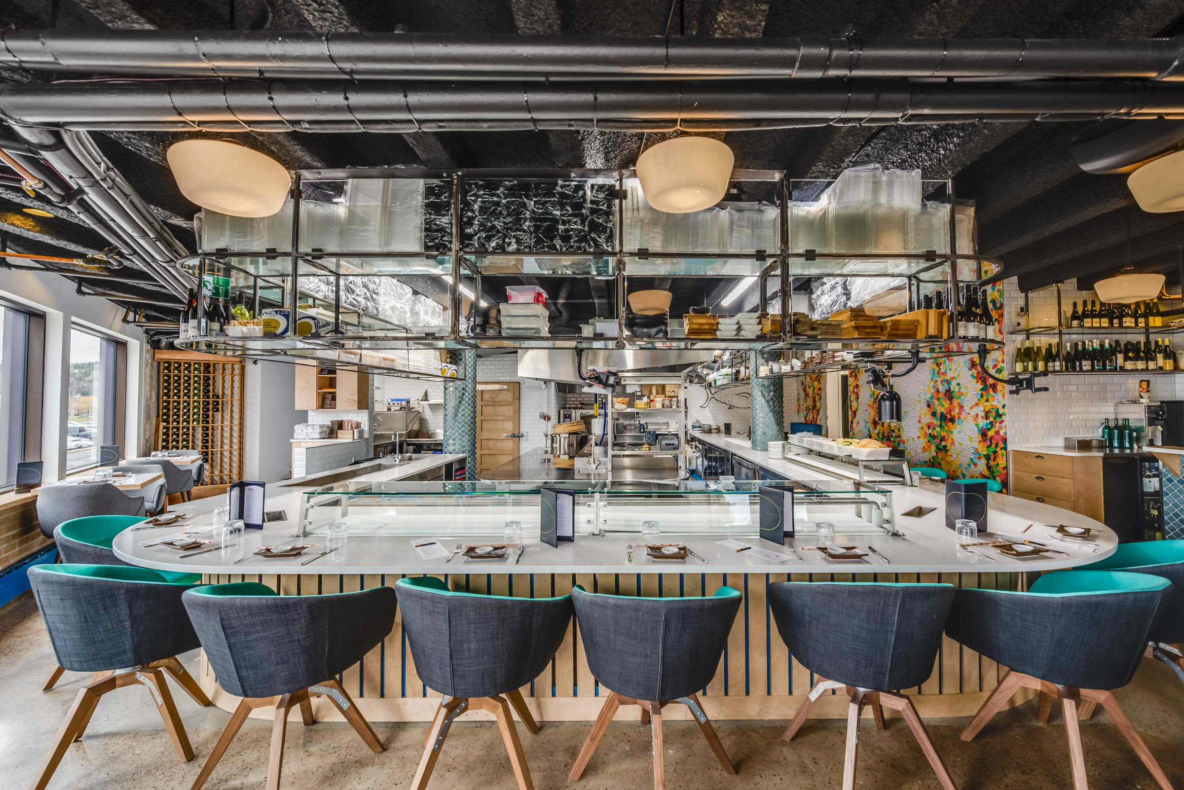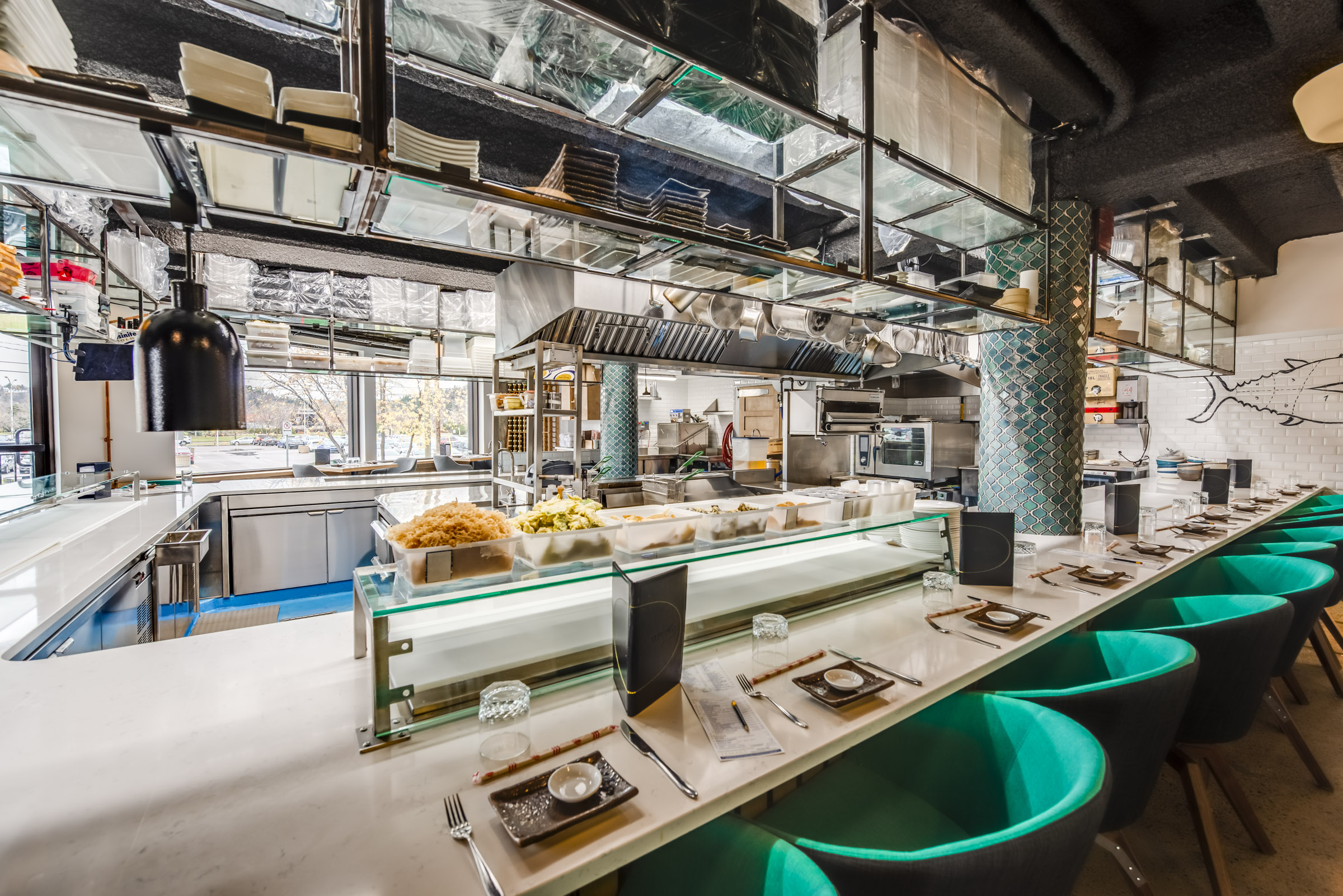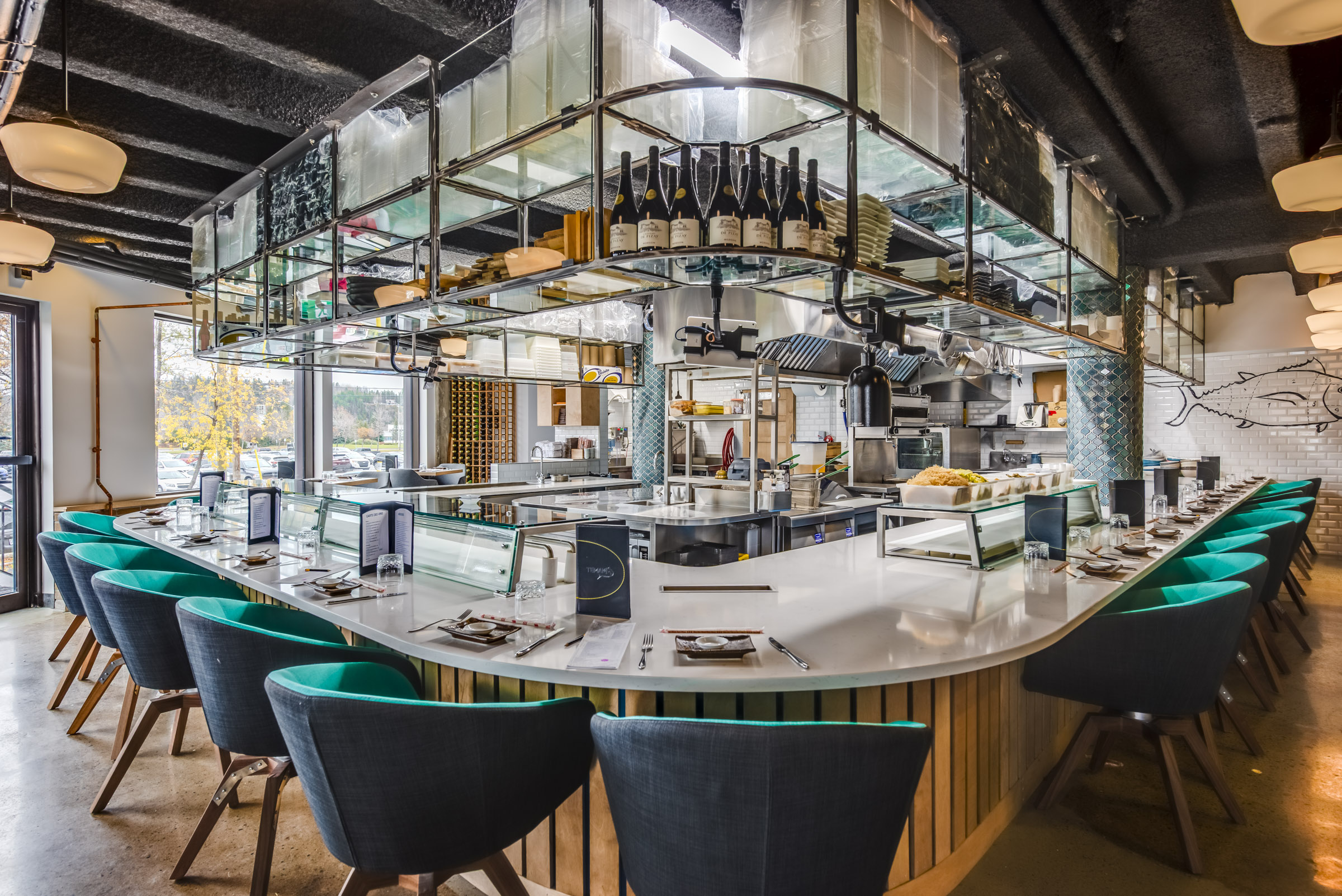 Pour Atelier du Chef, j’ai documenté la transformation de Temaki Sushi à Chicoutimi — une institution de 14 ans qui s’est offert un nouveau souffle sans quitter sa rue Racine d’adoption. Le cœur du projet : une cuisine ouverte centrale et un plancher rabaissé qui placent littéralement les clients au niveau des cuisiniers. Un aménagement pensé pour la transparence et le contact humain, que j’ai cherché à traduire à travers des images qui racontent autant l’espace que l’expérience qu’il génère.